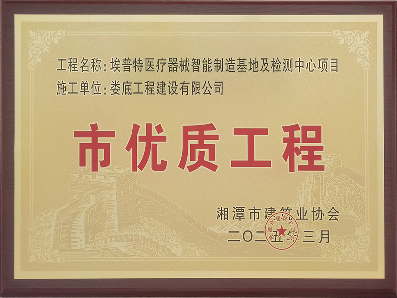 2024年度湘潭市優質工程牌匾(埃普特醫療器械智能制造基地及檢測中心)