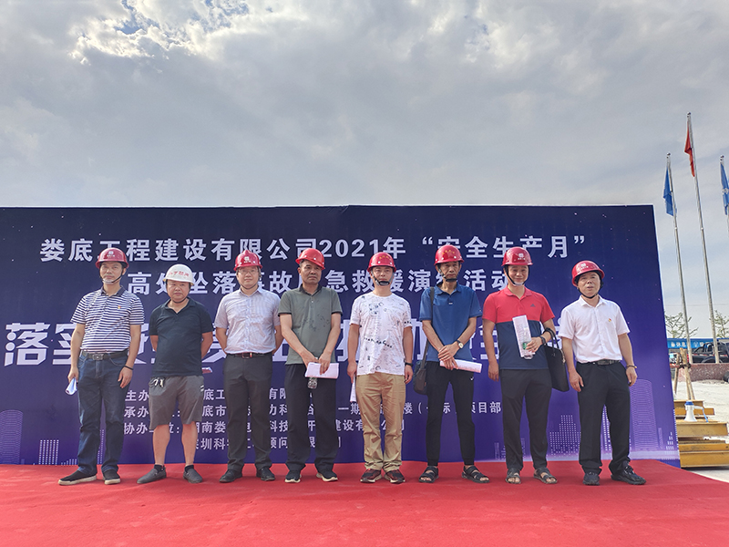 為進一步提高公司安全管理水平,規(guī)范公司安全生產(chǎn)過程的管理工作,本著"安全第一、預防為主、綜合治理"的安全管理方針。 加強建筑工地應對突發(fā)事件的處理能力,提高全員安全意識,切實掌握應急救援的的技能、技巧,讓員工在事故發(fā)生時將傷害減少到最低,同時為響應“學黨史,辦實事”的精神,公司和公司黨支部特組織了一次高處墜落事故應急救援演練活動。婁底經(jīng)開區(qū)住建局童韜先生、李愛民先生、李俊先生、雷海仁先生,建設單位現(xiàn)場負責人曾彪先生,監(jiān)理單位總監(jiān)柯又華先生,婁底工程建設有限公司副總經(jīng)理彭洪偉、顏克靈出席了本次演練活動,婁底市生態(tài)電力科技谷A區(qū)一期一標項目部全體人員,公司各在建項目負責人、關鍵崗位人員參加了此次演練活動。