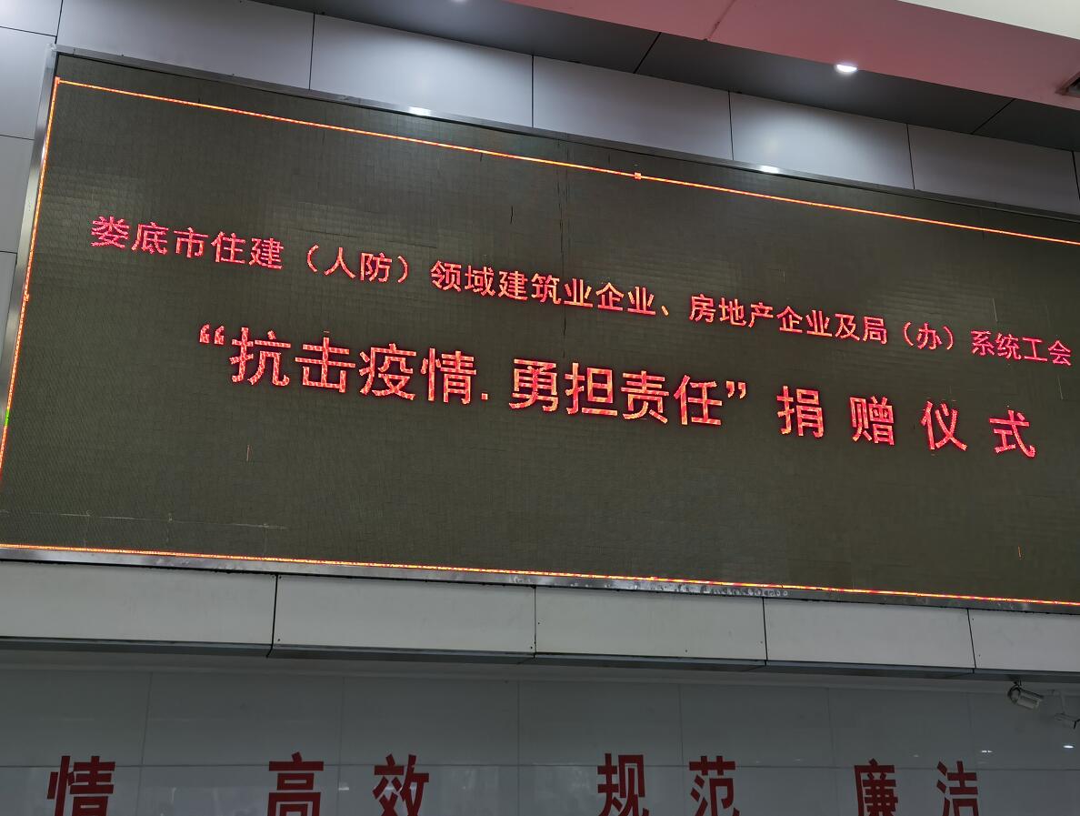 “病毒無情人有情”、“一方有難八方支援”!2020年2月11日,在婁底市住建局(人防辦)組織的市住建(人防)領域建筑業企業、房地產企業及局(辦)系統工會“抗擊疫情,勇擔責任”捐贈儀式上,公司總經理、法人代表胡勁代表婁底工程建設有限公司捐贈人民幣10萬元,為抗擊新冠病毒肺炎疫情盡企業的一份社會責任。公司董事長張愛慧參加了捐贈儀式。