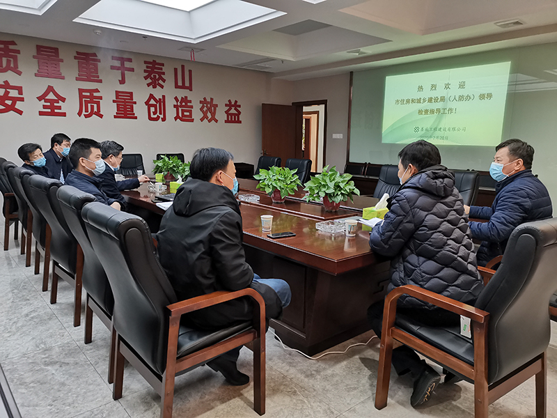 2月20日下午,市住房和城鄉建設局(人防辦)局長黃大生一行來我公司指導復工復產工作。黃局長對我公司前段時間的疫情防控工作進行了充分的肯定,要求公司按照市委政府的文件精神,采取有力措施,精心組織各施工項目全面復工。黃局長要求公司2月底項目開工率要達到全省平均水平,3月份各項目要全面復工,公司要確保全年的經濟發展目標不變。公司董事長張愛慧代表公司對黃局長一行在百忙之中來公司指導復工復產工作表示感謝并作了匯報發言。公司總經理胡勁、總工程師彭洪偉、副總經理顏克靈等參加了匯報會。