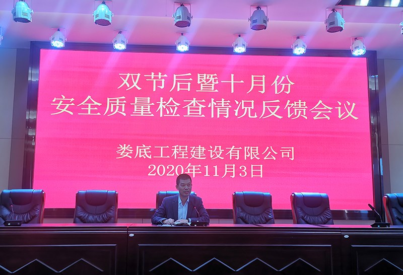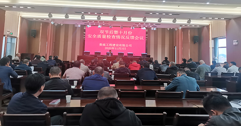 2020年11月3日14:30,公司在9樓多功能會議廳召開雙節后暨十月份安全質量檢查情況反饋會議。出席會議的主要領導有:副總經理彭洪偉、副總經理顏克靈、總工程師李偉、總經理助理姜建輝,各部室負責人及項目管理人員100余人參加了此次會議。