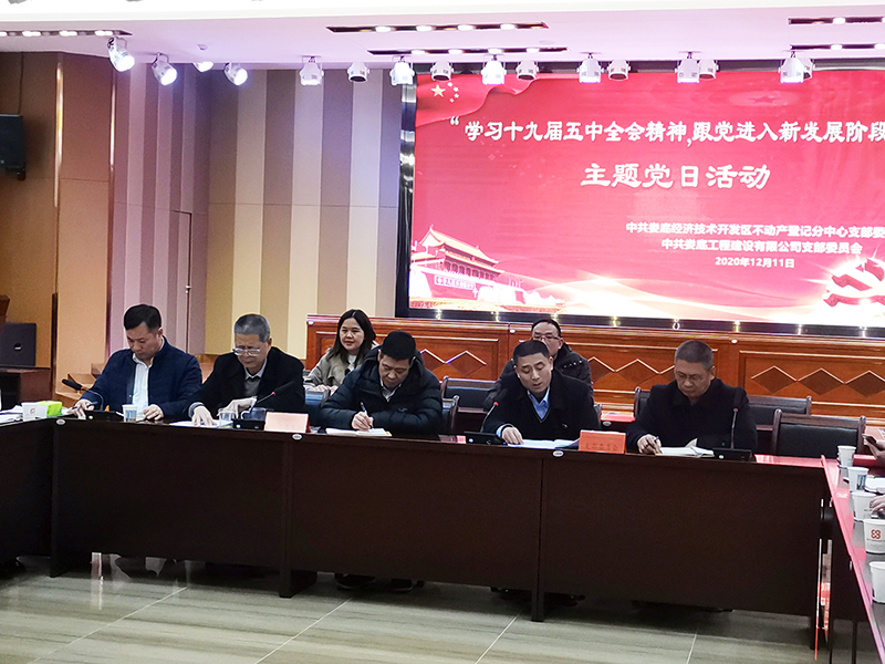 為全面深化“深化機關黨建+兩新黨建”結對互聯工作機制,推動兩新組織黨建工作好、生產發展好,2020年12月11日17時,中共婁底經濟技術開發區不動產登記分中心支部委員會與中共婁底工程建設有限公司支部委員會在婁底工程建設有限公司9樓多功能會議廳聯合開展了“學習十九屆五中全會精神,跟黨進入新發展階段”的主題黨日活動。中共婁底經濟技術開發區不動產登記分中心支部委員會黨支部書記胡榮華、紀檢委員肖鳳初、組織委員李平貴等21名黨員和中共婁底工程建設有限公司支部委員會黨支部書記林有良、婁底工程建設有限公司董事長張愛慧、總經理胡勁等40余名黨員及入黨積極分子參加了此次學習活動。
