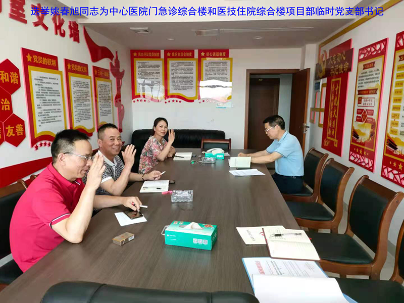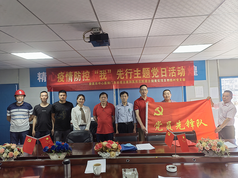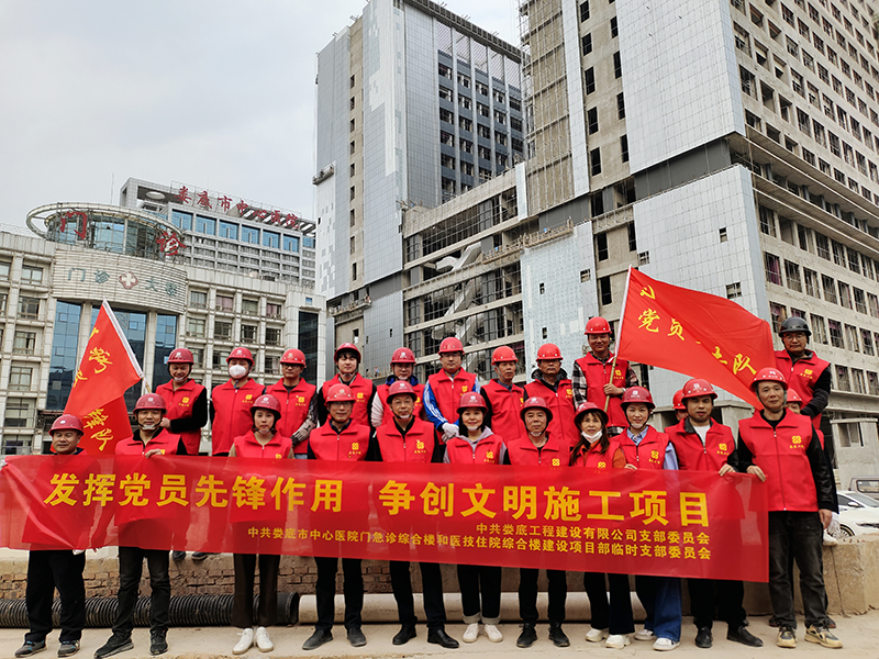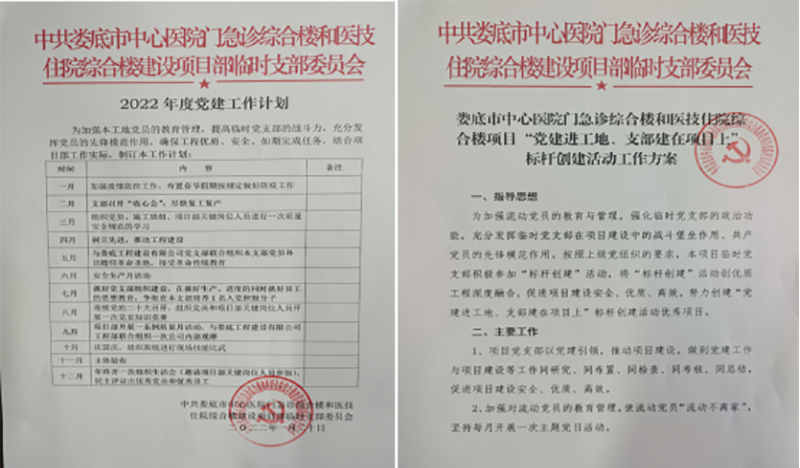 該項目地處婁底市最繁華街道的十字路口,又是婁底市最大的單體建筑公共項目。項目中標后,公司立即配備優(yōu)秀骨干組建項目部班子,并成立了中共婁底市中心醫(yī)院門急診綜合樓和醫(yī)技住院綜合樓建設(shè)項目部臨時支部委員會,推舉項目經(jīng)理姚春旭擔任臨時黨支部書記,并安排了黨建指導員。該支部目前有黨員8人。項目部設(shè)置了黨員活動室,文化走廊等,臨時黨支部“五化”建設(shè)達標。
