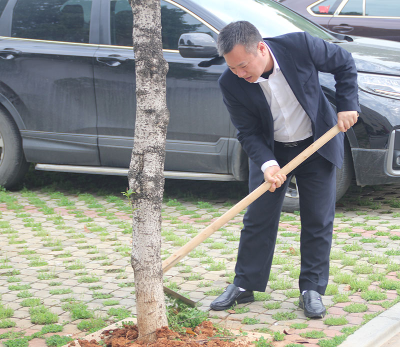 活動現(xiàn)場,志愿者們身穿紅馬甲化身“保潔”清潔公路、撿綠化帶里的垃圾;化身“園林技師”修剪綠植、施肥、澆水。