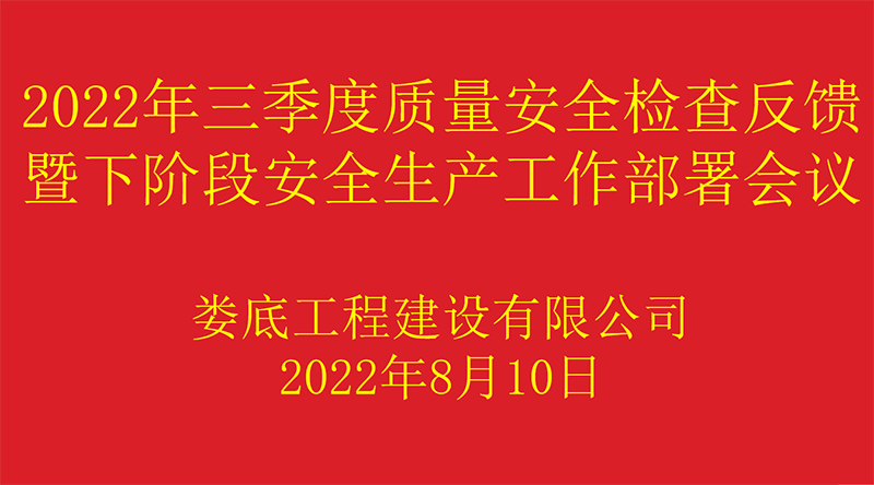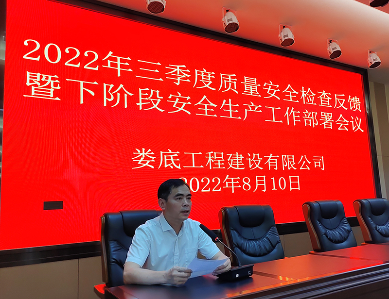 2022年8月10日9點(diǎn),公司在多功能會議廳召開“2022年三季度安全檢查反饋暨下階段安全生產(chǎn)工作部署會議”。公司總經(jīng)理胡勁、副總經(jīng)理彭洪偉、副總經(jīng)理顏克靈、總經(jīng)理助理姜建輝出席了此次會議,機(jī)關(guān)員工及項(xiàng)目管理人員80余人參加了此次會議。
