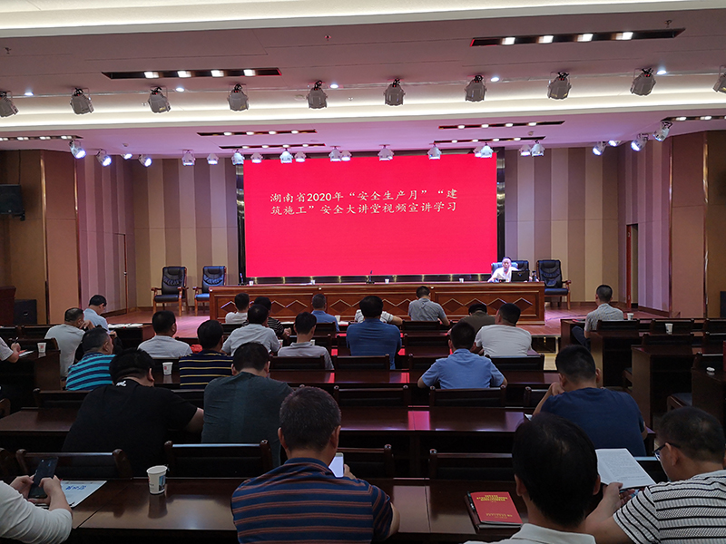 為貫徹《湖南省住房和城鄉建設廳關于開展2020年建筑施工“安全生產月”和“安全生產三湘行”活動的通知》(湘建建函[2020]69號)、《婁底市住房和城鄉建設局(市人民防空辦公室)安全生產委員會關于開展2020年建筑施工“安全生產月”活動的通知》(婁建安委發[2020]5號)要求,深入學習貫徹習近平總書記關于安全生產重要論述,牢固樹立安全發展理念,堅持“安全第一、預防為主、綜合治理”的安全總方針,進一步加強公司安全生產管理工作,營造安全生產良好氛圍,公司于2020年6月10日19點組織各部門和項目部人員在會議室舉行以“消除事故隱患,筑牢安全防線”為主題的“安全生產月”活動宣貫會。會議由總工程師李偉主持,公司總經理胡勁、副總經理彭洪偉、顏克靈出席了本次會議并講話。